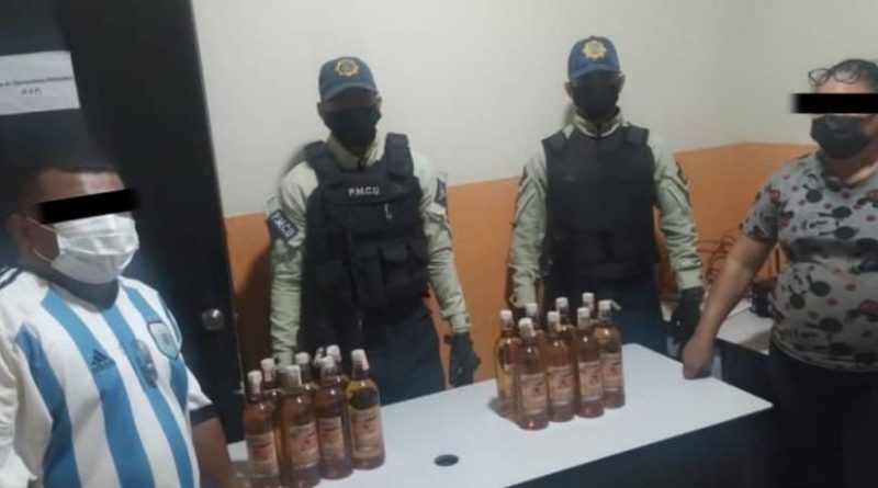 En el lugar los responsables del licor tenían una mesa, con varios recipientes de un litro cada uno, por lo que se les incautó y se procedió a la detención de dos personas que afirmaron ser los propietarios de las botellas que estaban expuestas a la venta.