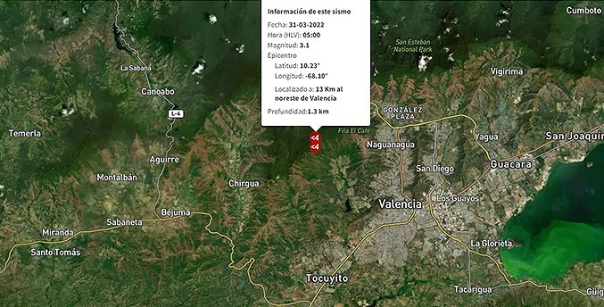 Funvisis registra temblor de 3.1 al norte de Valencia
