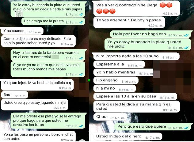 Algunos de los chats en los que “el Gigoló” intimidaba a su víctima adolescente. FOTOS: CORTESÍA DEL GAULA.