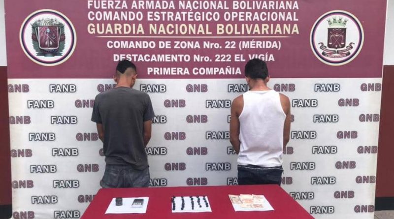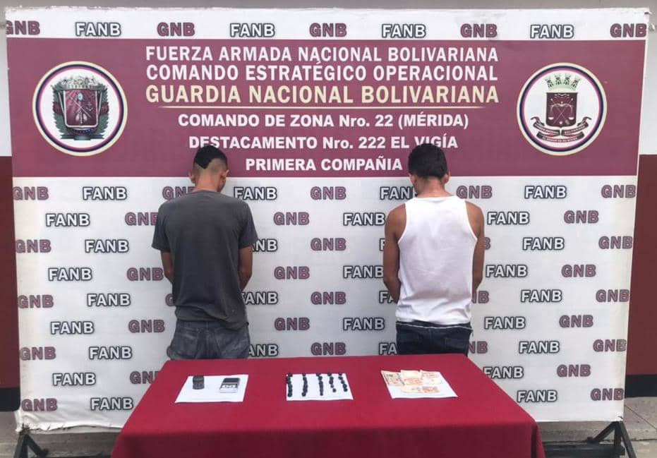 Efectivos militares de la GNB atrapan a dos microtraficante de droga en el municipio Alberto Adriani, así lo informó nel G/B Hernán Dionisio Rincón Paz, comandante de Zona 22 de la GNB en el estado Mérida.
