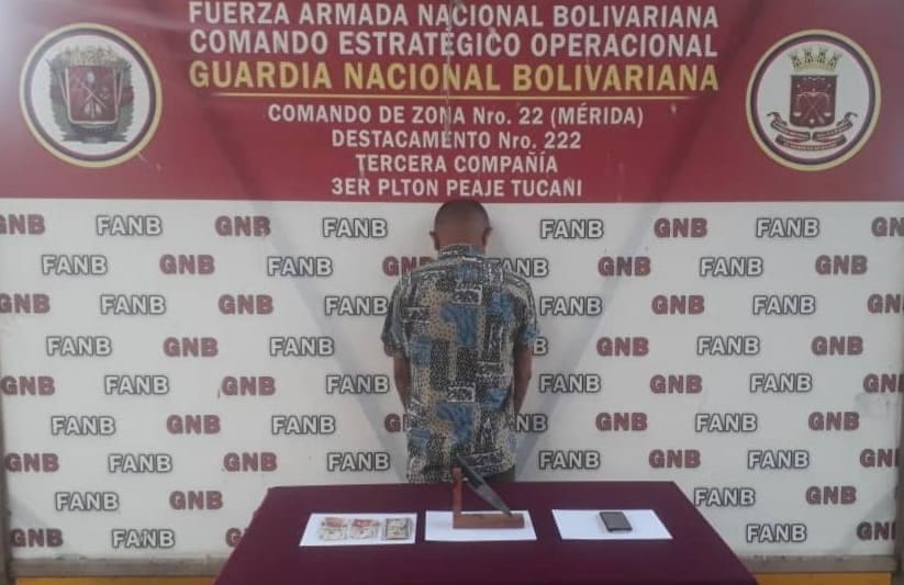 El hombre, residenciado en la población de Sabana Grande, en el estado Trujillo, fue capturado en el sector Guachizón, en el municipio Caracciolo Parra y Olmedo de la entidad merideña y quedó a disposición de la fiscalía Sexta del Ministerio Público (MP).