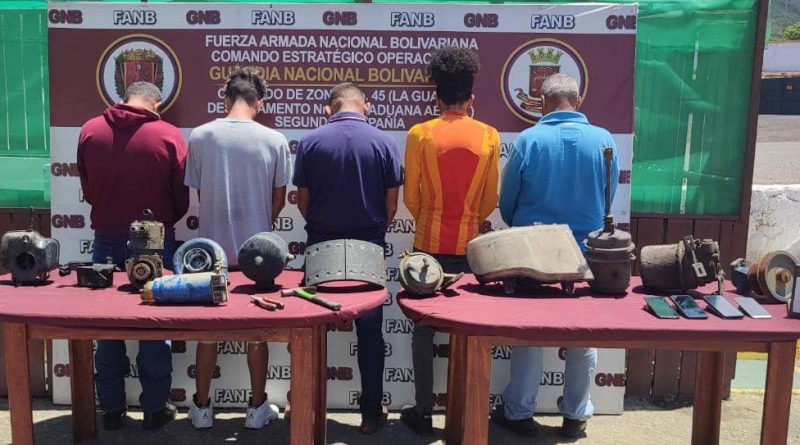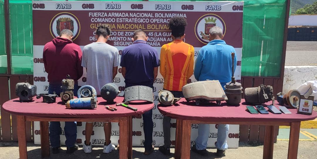 Los detenidos quedaron identificados como: Rudy Alexis Azuaje Arroyo, de 42 años de edad, José Francisco Marcial Gill, de 27 años , Fernando José Castro Rodríguez de 44 años, Geremi Antonio Ortiz Moreno de 31 años y Julio César Escalona Morales de 32 años de edad.