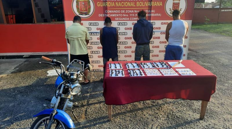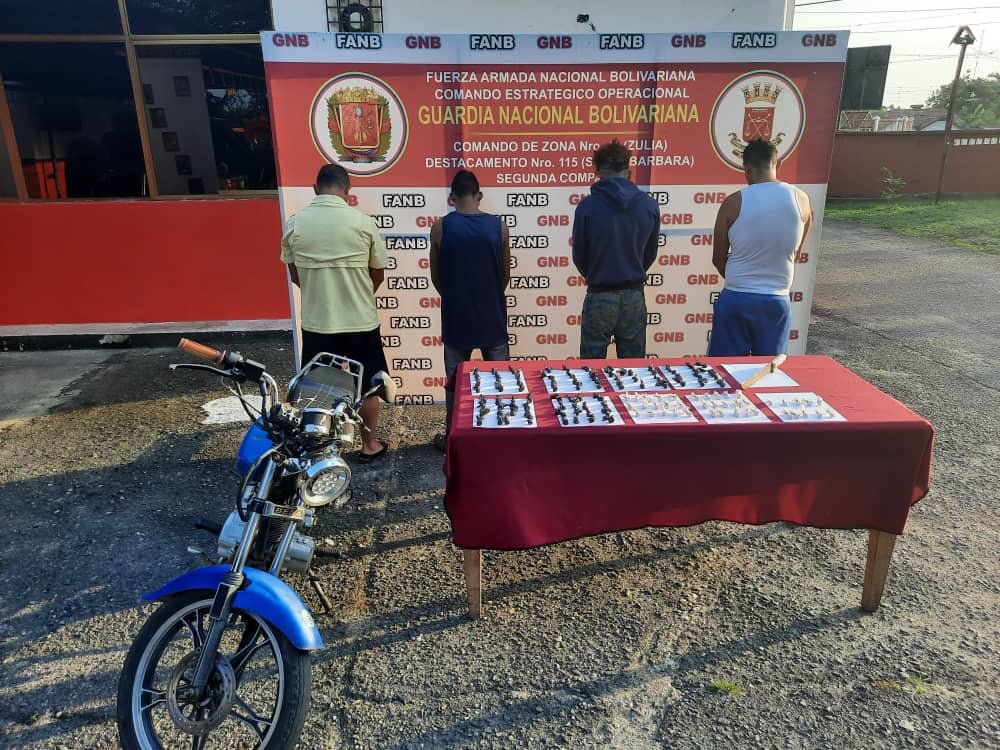 Durante labores de patrullaje que realizaron efectivos militares adscritos a la segunda compañía de El Batey en el municipio Sucre del estado Zulia, se efectuó el desmantelamiento de un GEDO integrado por dos menores de edad, y dos ciudadanos de nombres José Ebelio Ramirez Márquez, y José Manuel Peña Salcedo a quienes les incautaron 80 dosis de presunto, estupefacientes, los cuales pesaron 80 gramos, asimismo se les incautó un arma blanca, y una Moto marca Bera.