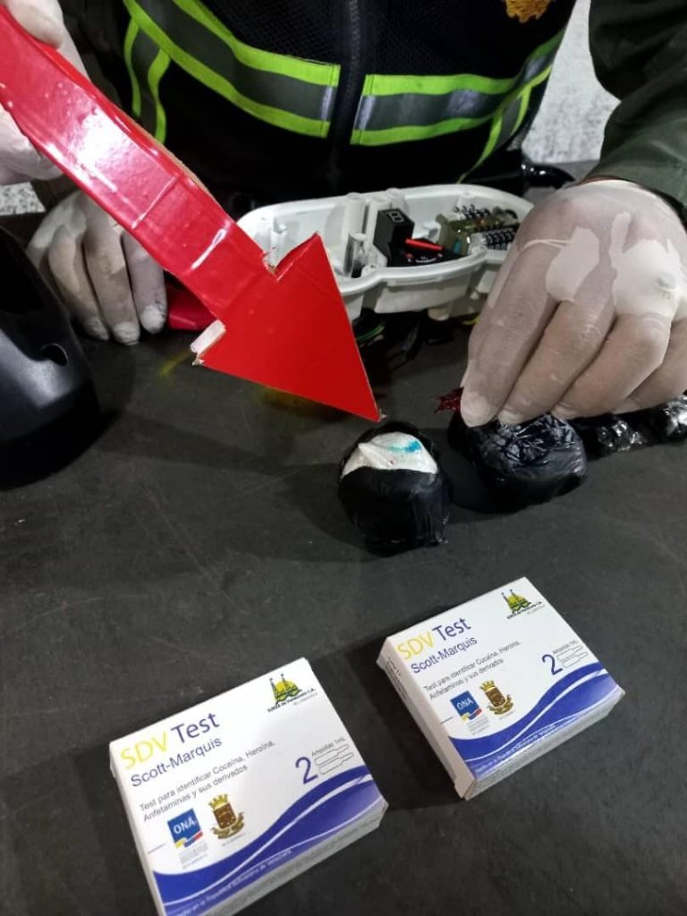 Durante chequeo de exportación de encomiendas en el Aeropuerto Internacional de Maiquetía, efectivos militares adscritos al Comando de Zona N°45 La Guaira conjuntamente con la Unidad Especial Antidrogas N° 45, efectuaron la incautación de 7 envoltorios de presunta droga denominada cocaína, que arrojó un peso aproximado 212 gramos.