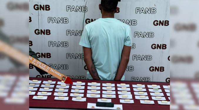 Otro golpe contra el tráfico de drogas asestó la Guardia Nacional Bolivariana (GNB), en el Puesto de Atención al Ciudadano (PAC) de Peracal, en el municipio Bolívar, al apresar una ‘mula’ con 47 envoltorios — tipo dediles– de cocaína en su estómago.