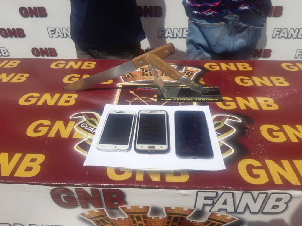 Al momento de la detención se les retuvo 2 cuchillos, con los que amaneraban a sus víctimas, y 3 celulares que eran de personas que habían robado de manera reciente.