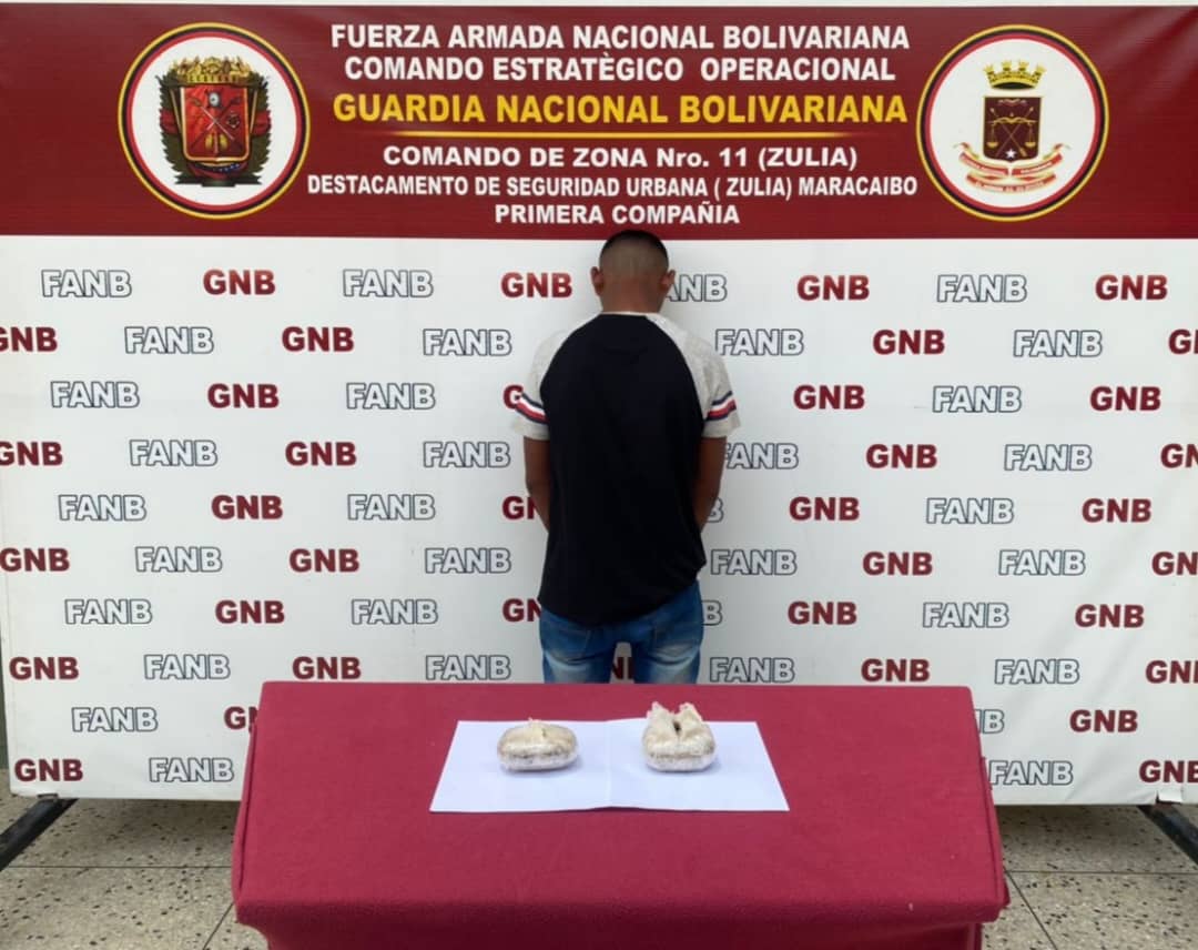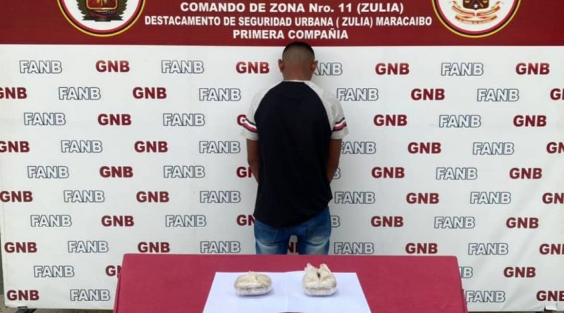 Efectivos militares adscritos al Destacamento de Seguridad Urbana Zulia, en la mañana de ayer, lograron aprehender a un hombre en flagrancia que llevaba dos panelas de droga entre sus pertenencias.