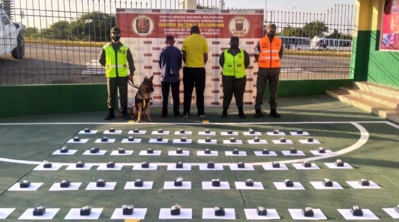 Los guardias nacionales bolivarianos pertenecientes al Destacamento 111 junto a efectivos de la URIA 11 Zulia, identificaron a los detenidos como: Juan Pedro Rodriguez Escorche (32) y Argenis José Mendoza Lopéz (25), los cuales pertenecen al GEDO Los Barranquilleros, dedicados al tráfico ilícito de drogas.
