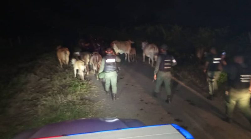 Tras recibir una denuncia de los dueños de una finca de nombre “La Jungla”, ubicada en el Kilómetro 35 de la troncal 6 del eje carretero Machiques-Colón, acerca de la incursión de varios sujetos armados y el robo de 100 piezas de ganado, se activó una comisión de la FANB, encabezada por el Destacamento 114 del Comando de Zona 11 Zulia, logrando recuperar de manera inmediata los animales de la especie bovino.