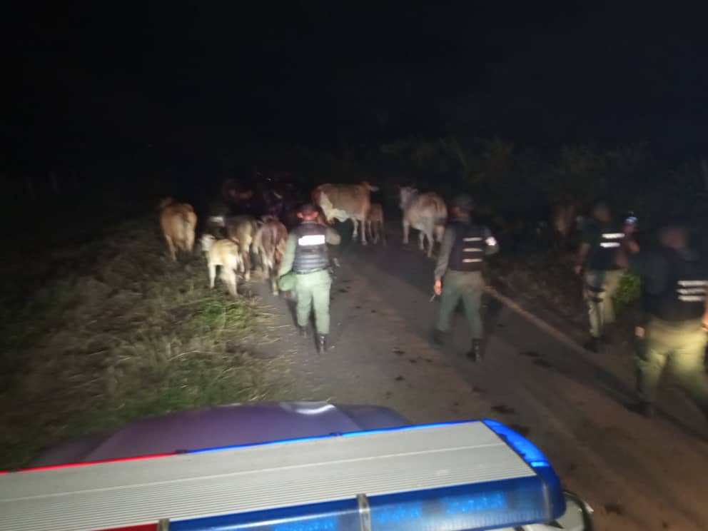 Los Guardias Nacionales Bolivarianos, adscritos al PAC Km-40 en la Cañada de Urdaneta, recuperaron el ganado en horas de la madrugada, y tras una inspección en las instalaciones de la finca, fueron hallados y liberados 6 ciudadanos, 3 adultos y 3 menores, quienes habían sido amordazados y encerrados en un cuarto, para perpetrar el robo.