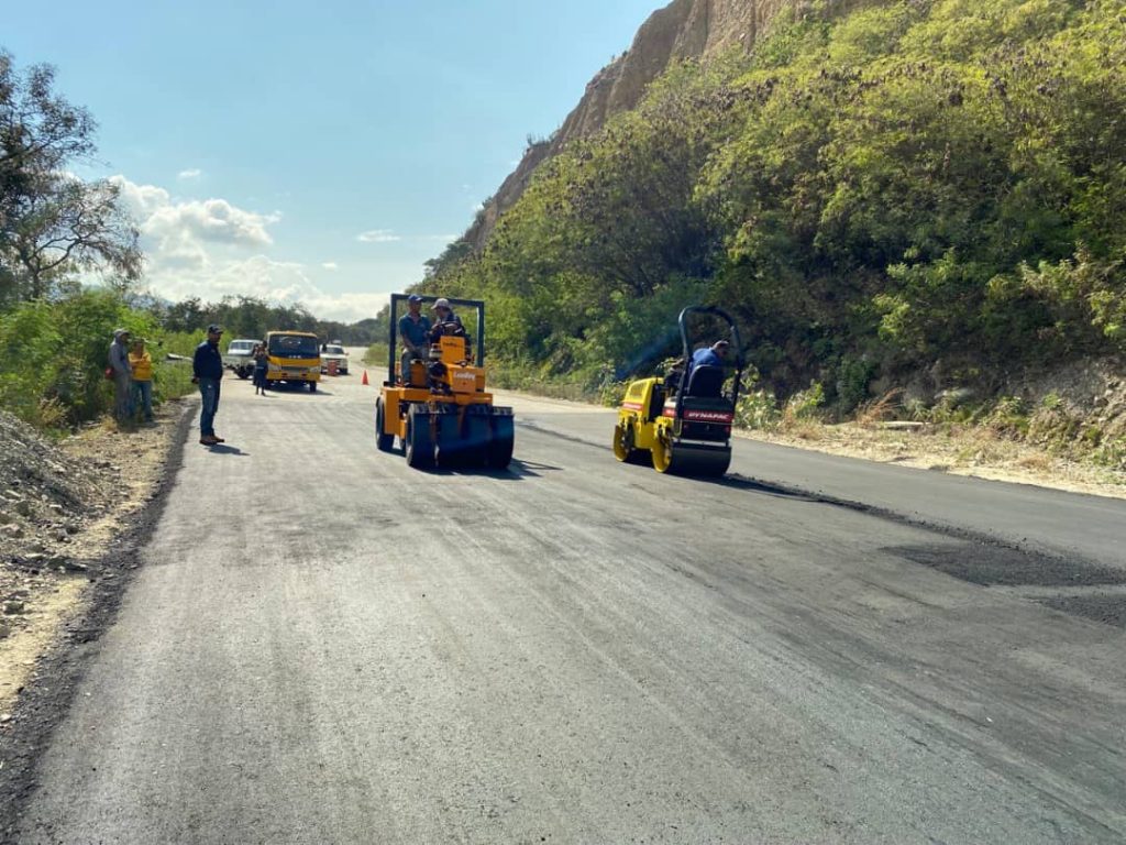 “Son 600 toneladas de asfalto las que se están colocando en esta importante arteria vial y que nos permitirá mejorar notablemente la transitabilidad desde Las González hasta San Juan”, indicó Guzmán.