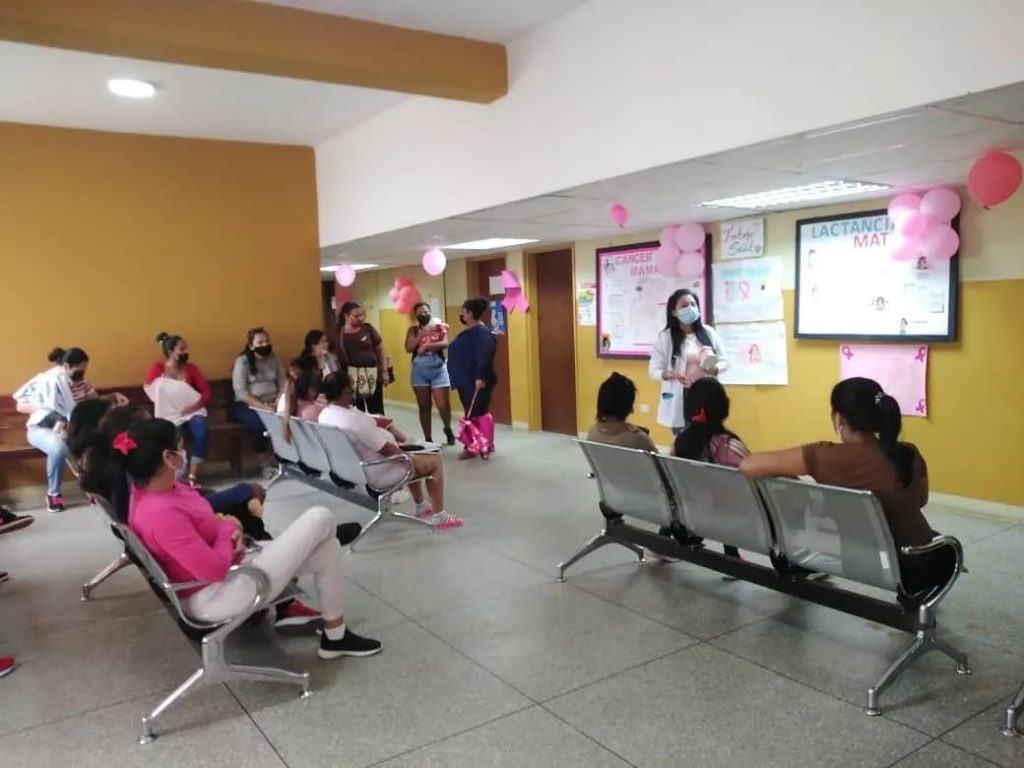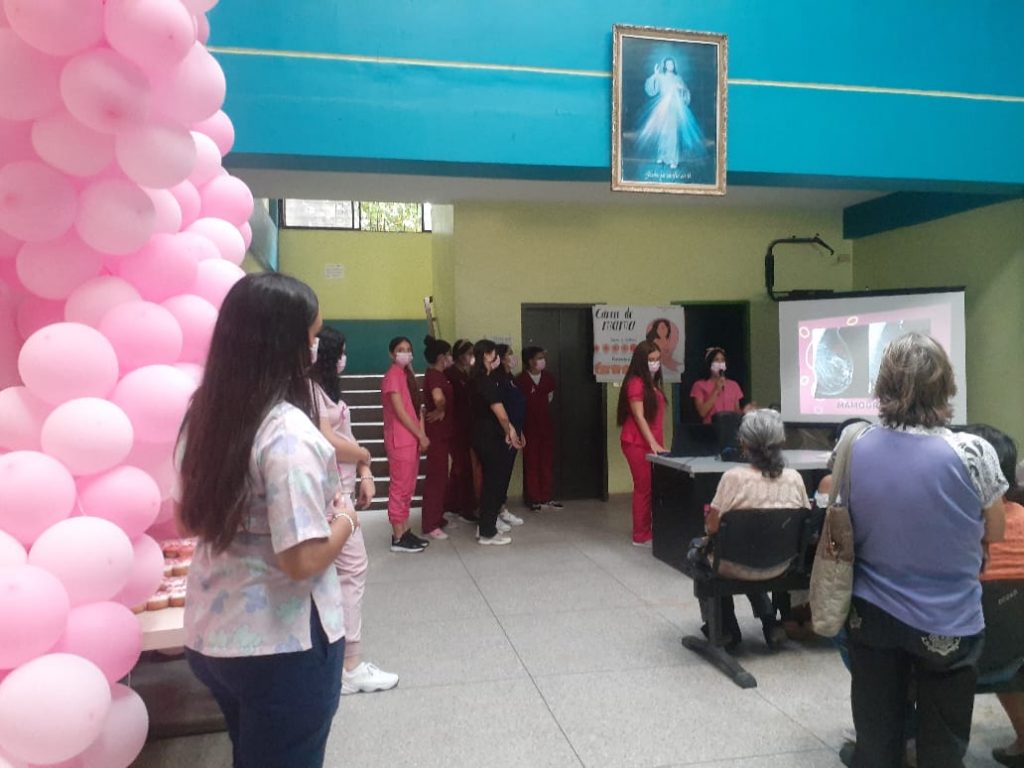 En este sentido, el Programa Regional de Oncología, conjuntamente con los programas de Salud, desarrolló un mes de actividades en el Mes Rosa, desarrollando pesquisas, dinámicas sobre técnicas de exploración de mamas y sesiones educativas a fin de promocionar y difundir la prevención del cáncer de mama en la población.