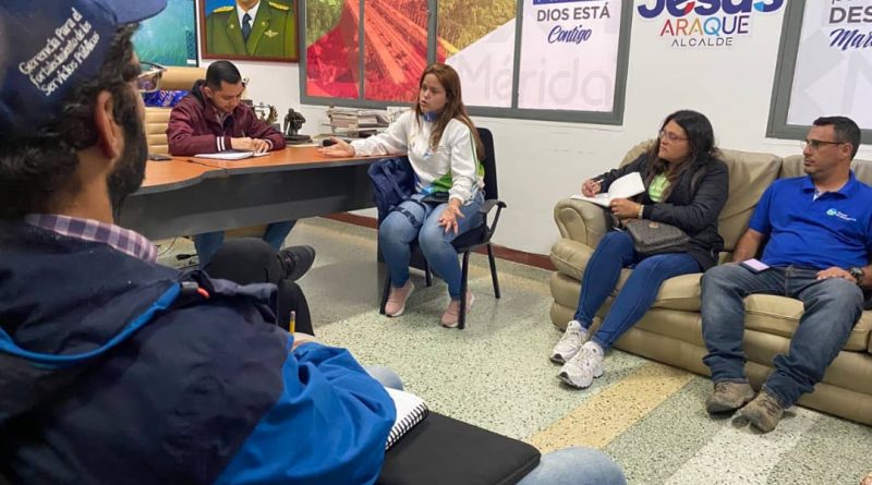 La responsable de la Secretaría de los Servicios Públicos de la gobernación, Marielys Sacipa, informó que este domingo se instaló una mesa de trabajo en la Alcaldía del municipio Libertador, en la cual participó el alcalde Jesús Araque, funcionarios de Aguas de Mérida, Corpomérida y el Instituto Nacional de Geología y Minería.