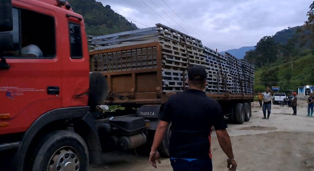 El gobernador del Estado Bolivariano de Mérida, Jehyson Guzmán, tras el apoyo del presidente Nicolás Maduro, entregó el primer lote de secciones metálicas del nuevo puente de guerra ubicado en el sector Santa María de Santa Apolonia, en el municipio Tulio Febres Cordero.