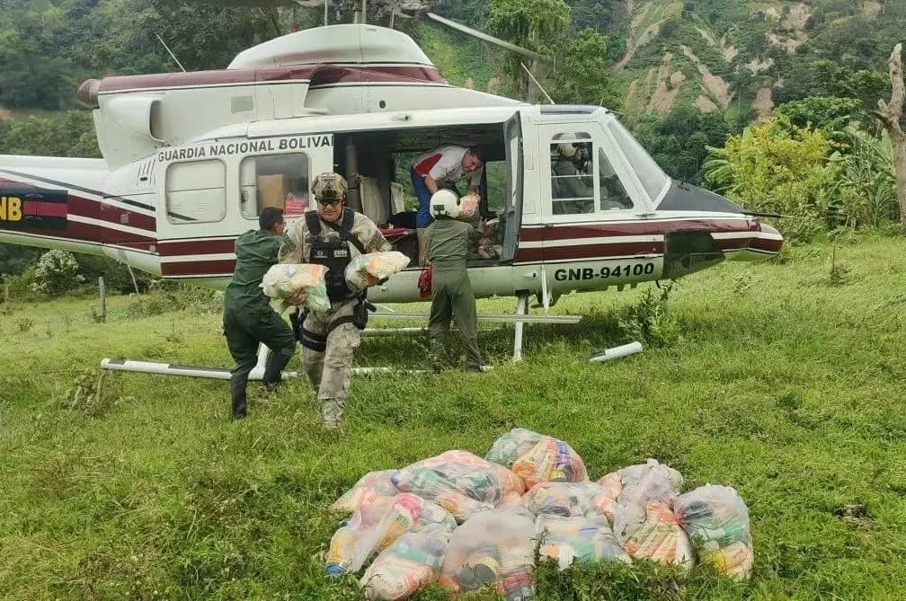 Dentro de la ayuda llevada en helicóptero, se encuentran alimentos, agua potable, medicinas, ropa, zapatos, pañales, artículos de uso personal entre otros enseres.