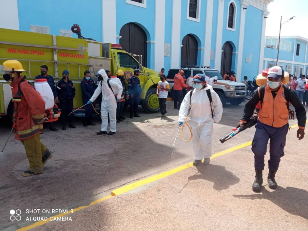 Más de 24 mil personas pertenecientes a Protección Civil, Bomberos, Policía Nacional Bolivariana, Guardia Nacional Bolivariana, y el pueblo organizado en Brigadas Comunitarias de Trabajo y Producción han salido a escala nacional a desinfectar espacios para controlar los contagios de la Sarcov-2 en el país.