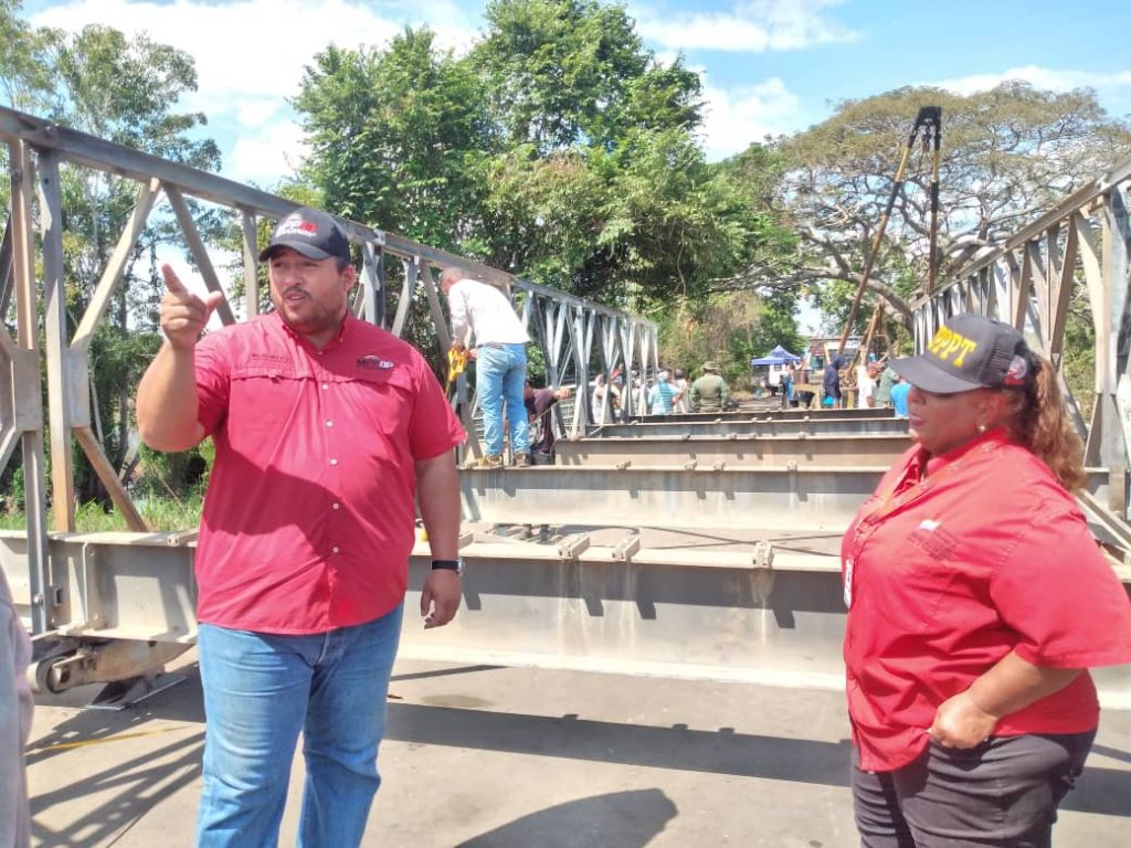 Asimismo, el ingeniero indicó que según las proyecciones realizadas por el equipo regional del ministerio de transporte encabezado por la Ing. Regina Spera, estiman poder concluir los trabajos en un tiempo no mayor a siete días: “Estamos trabajando a toda máquina para restituir el paso en el menor tiempo posible. El trabajo realizado por el Mayor Julio Castillo, responsable por la FANB del armado de la estructura, ha sido extraordinario y ha estado sujeto a la planificación prevista. Confiamos en poder tener un clima favorable para poder concluir la tarea en el tiempo estimado.” Concluyó Ariza.