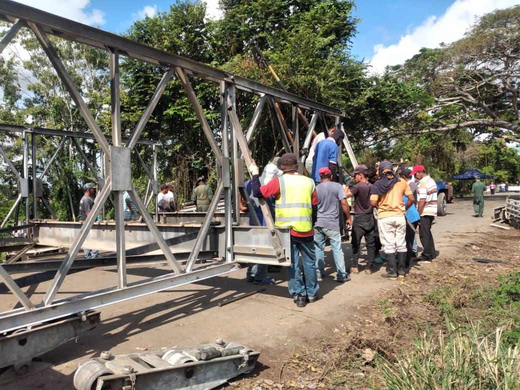 Con un esfuerzo integral entre FONTUR, los ministerios de transporte y obras públicas conjuntamente con oficiales de la FANB se dio inicio de manera exitosa al proceso de armado de un puente de guerra del tipo Acrow Panel para restituir el paso vehicular entre las ciudades de Encontrados y San Carlos de los municipios Catatumbo y Colón respectivamente.