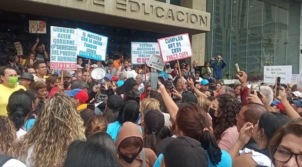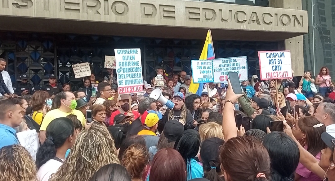 Envalentonados, gritando, con pancartas, y alguna que otra curiosidad que llamó la atención, se fueron aglomerando estos trabajadores.Caracas, Mérida, Zulia, Sur del Lago, Trujillo, Bolívar, Guárico, Yaracuy, Nueva Esparta, y Miranda entre otros estados del país reportaron manifestaciones pacíficas de este sector. En Caracas Gricelda Sánchez, de la ONG @fordisivzla señaló que a partir de hoy el gremio educativo se declara en “Asamblea Permanente”, la educadora informó que en varias regiones del país protestaron para expresar el descontento de este gremio, en tal sentido indicó “de cada 10 educadores venezolanos 5 viven en extrema pobreza(…) Hacemos un exhorto a la ministra para que firme una contratación colectiva, hoy los educadores nos encontramos imposibilitados en volver a nuestra escuelas (…) El docente que más gana en nuestro país pudiera llegar a los 30$ y con eso nadie puede vivir (…) Los obreros y administrativos no pasan de 10$ (…) Hoy alzamos la voz no solo por los maestros, también los obreros y los administrativos, más de 8 millones de estudiantes están siendo afectados ya que en Venezuela se nos viola nuestro derecho a vivir” apuntó.
