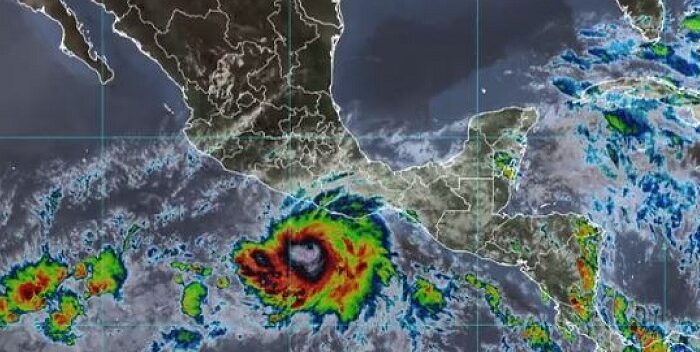 El huracán, el primero que se forma en las aguas del océano Pacífico y que alcanzó la categoría 2 en la escala Saffir-Simpson, sigue acercándose a las costas de Oaxaca, según el Servicio Meteorológico Nacional (SMN).