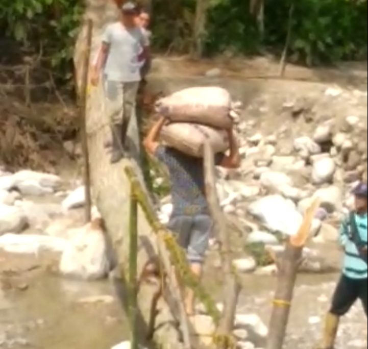 El pueblo turístico de las aguas termales aún sigue incomunicado con puentes improvisados hechos por la comunidad; habitantes de la población Santa Apolonia, municipio Tulio Febres Cordero del estado Mérida, se las ingenian para poder trasladar alimentos y hasta personas que requieran atención médica.