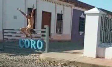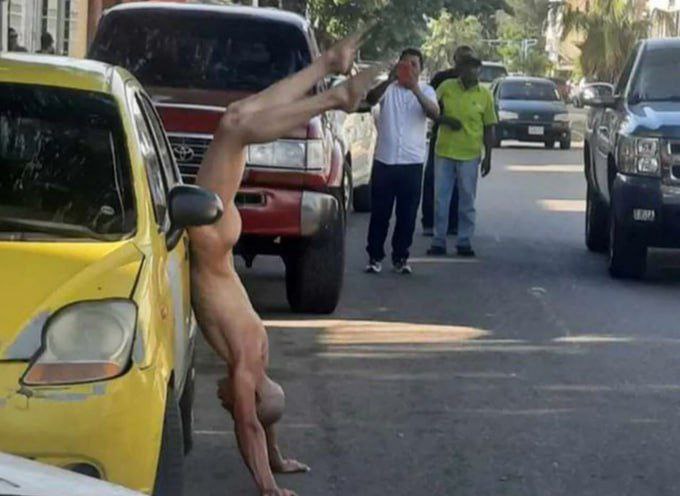 Hombre con aparentes trastornos mentales en la tarde de este lunes 16 de enero causó zozobra y conmoción en Coro  Estado Falcón al andar totalmente desnudo por la calles y hacer piruetas y acrobacias en las avenidas,  con una fijación particular en los vehiculos.