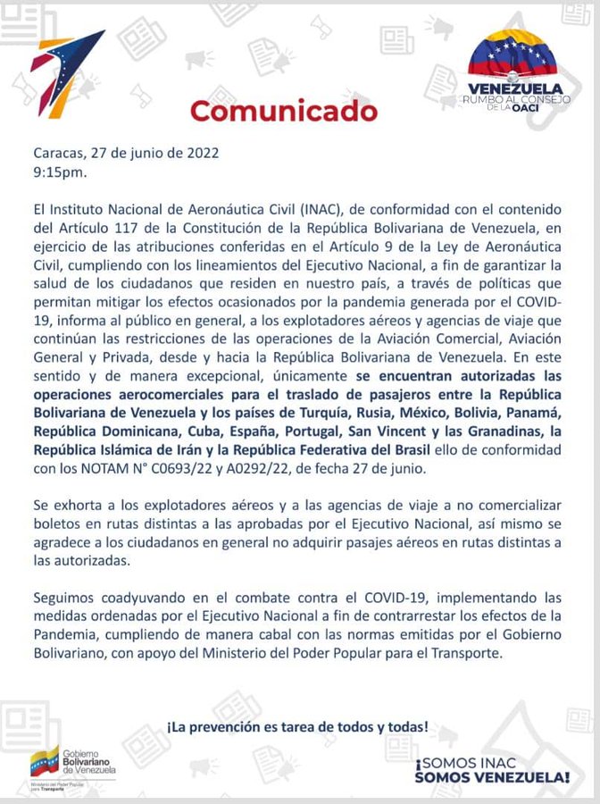 «Asimismo, se agradece a los ciudadanos en general no adquirir pasajes aéreos en rutas distintas a las autorizadas», dice parte del texto.
