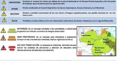 Además, el Inameh estima también áreas de nubosidad con precipitaciones y eventuales descargas eléctricas al sur del lago de Maracaibo y los Andes; asimismo. Nubosidad fragmentada con algunas lloviznas en diversas zonas de Miranda, Apure, Amazonas y Bolívar.