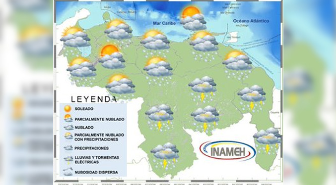 Inameh prevé nubosidad y lloviznas dispersas durante este sábado 15-E