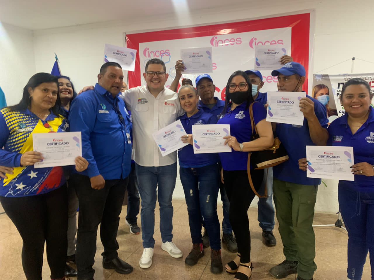 En representación del Viceministro de Comunidades Educativas y Unión con el Pueblo y Presidente del Inces, Wuikelman Ángel Paredes, el Gerente regional, José Vicente Farías Echeverri, en compañía de los  directivos del MPPPST, entidades nacionales y regionales y la Jefa de la Zona Educativa Penélope González, hizo entrega de los certificados a trabajadores y trabajadoras de entidades como: Hidrolago, Corpoelec,  Pequiven y otras, de los municipios: Cabimas,  Lagunillas, Maracaibo, Miranda, San Francisco y Sucre.