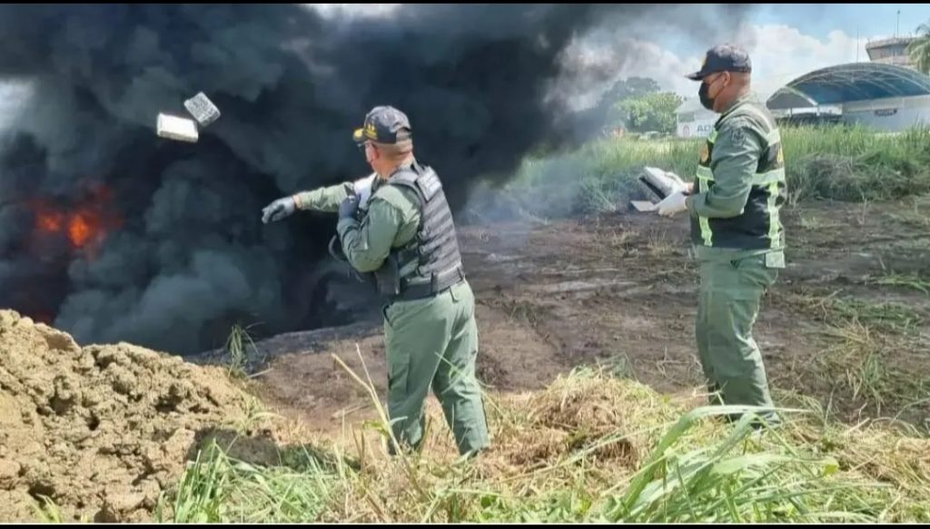 Funcionarios de la Guardia Nacional (GN) incineraron un total de 2.296 panelas de cocaína, un total aproximado de 2.610 kilogramos de droga, incautada la pasada semana en el municipio Catatumbo en el Estado Zulia.