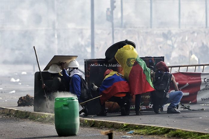 El líder de las manifestaciones, Leonidas Iza, se vio sorprendido mientras daba una entrevista que fue interrumpida por las fuertes detonaciones.