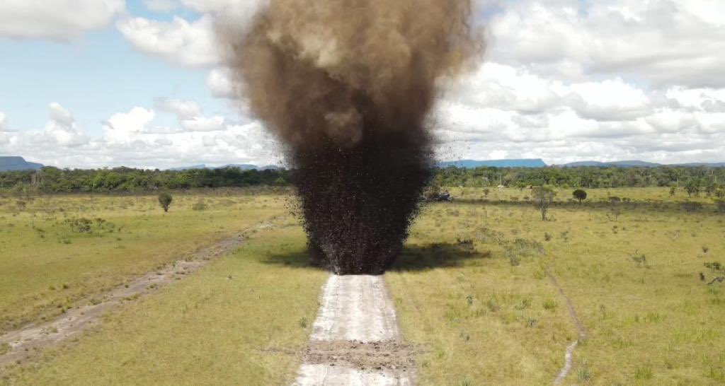 Hernández Lárez acompañó el balance con varias fotografías en las que se observan explosiones en pistas clandestinas, parte del procedimiento de inutilización llevado a cabo por los efectivos de la FANB.