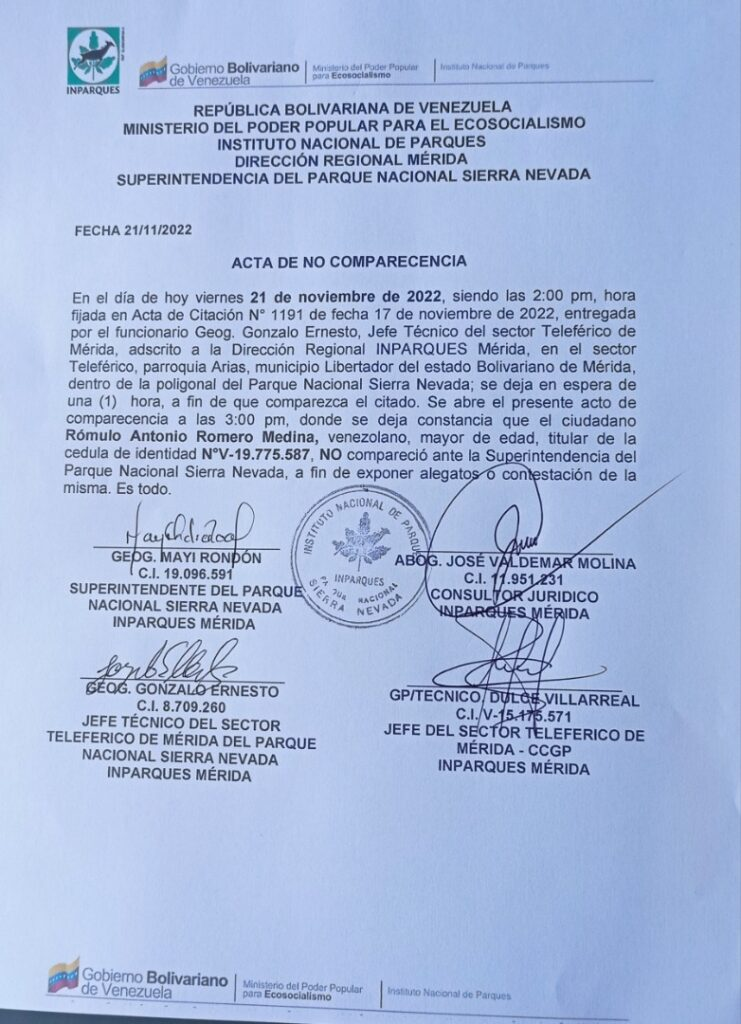 Esta semana una fuente de 800 Noticias de Instituto Nacional de Parques de Venezuela (Inparques) que por  el hecho que está siendo investigado por la Fiscalía, al personal de Guarparques se les prohibió el acceso a las instalaciones Sistema Teleférico Mukumbarí (STM) por orden de la gerencia.