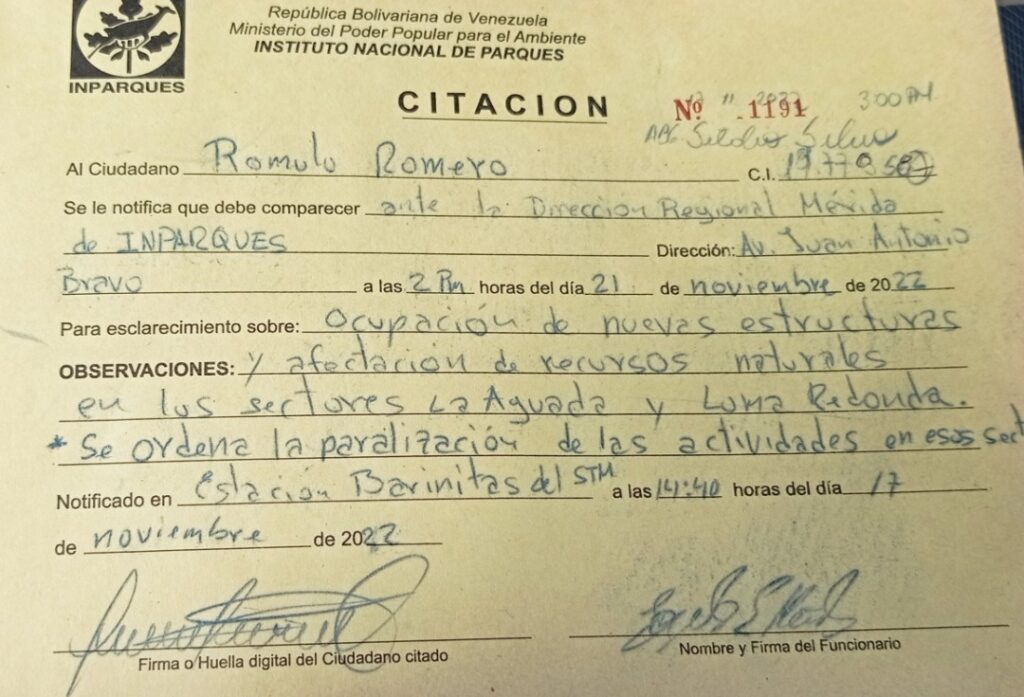Asimismo, los funcionarios de Inparques denunciaron que hay planes por parte de STM de realizar una pista de motocross, bicicletas, rutas de escaladas.