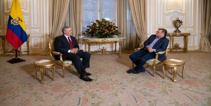 Después de las 6 de la tarde se encuentran reunidos en la Casa de Nariño, a puerta cerrada, el presidente Iván Duque y el presidente electo, Gustavo Petro.