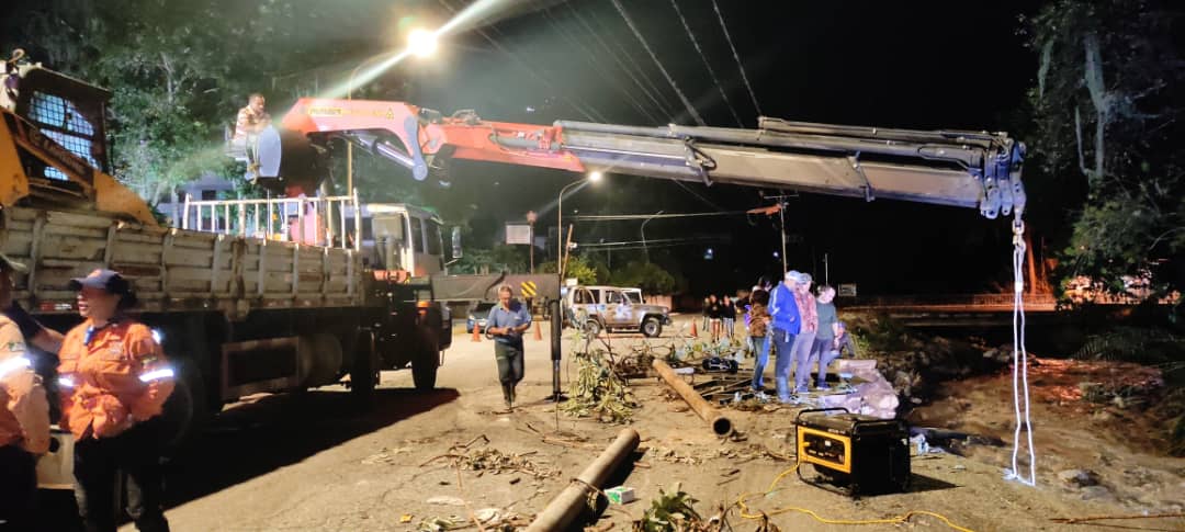 “Se llevó un minicargador de la Gobernación del estado, un minicargador de la Gran Misión Barrio Nuevo Barrio Tricolor, para ejecutar trabajos de remoción de material de sedimentos en la calle La Vega, también se empleó un brazo articulado (Pigman) para la movilización de una tubería de 6″ de la línea de aducción afectada por la fuerte crecida del río a la altura del sector La Floresta”, explicó Nava, al tiempo que señaló que la última tarea descrita se desarrolla junto a un equipo de Aguas de Mérida, pero se debió suspender temporalmente producto del aumento del caudal del río.