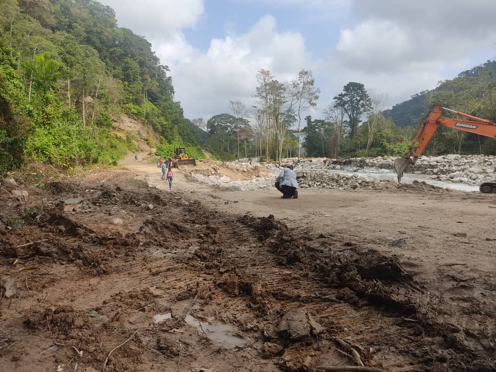 “Las lluvias se llevaron la calzada de penetración a lo interno de la carretera, eso nos llevó a ejecutar tareas de mejoramiento de la vía, como la construcción de una berma de protección con personal especializado a bordo de máquinas jumbo y payloader”, agregó Nava.