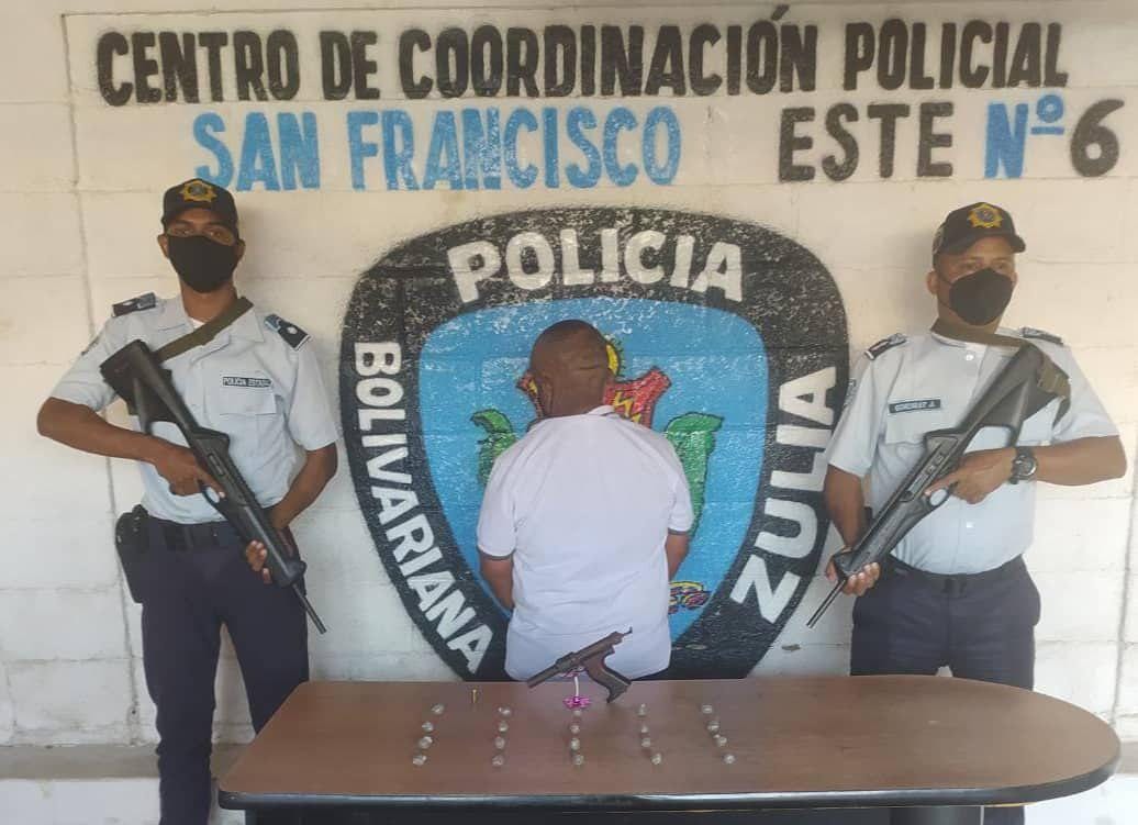 Indicó el CJ Sergio Villasmil Rondón director general del Cuerpo de Policía del estado Zulia (Cpez), una vez conocida la información los uniformados se dirigieron hasta el sector donde aprehendieron a José Dosanto González González de 50 años de edad, a quien le incautaron 20 envoltorios con restos vegetales de presunta marihuana con un peso de 20 gramos, así como un arma no industrializada con un proyectil sin percutir de 9 milímetros.