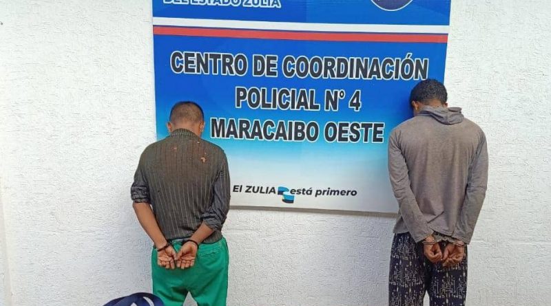 El CJ Roberto Antonio Alfaro Molinares director general del Cuerpo de Policía del estado Zulia (CPEZ), identificó a los detenidos como Carlos Eduardo González Palmar (30) y José Ramón Orozco Moreno (22), en cuyo poder se encontró 39 envoltorios con restos orgánicos de presunta marihuana con un peso de 74 gramos.