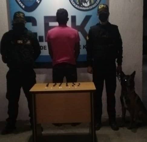 En el barrio San Benito, parroquia Marcial Hernández, municipio San Francisco, agentes del Equipo de Respuesta Especial (ERE) arrestaron a Julio Enrique Palencia Colina, quien tenía en el shorts 11 envoltorios con una sustancia polvorienta de presunta droga, con un peso de 18 gramos, éste al percatarse de la presencia policial quiso evadirse por lo que fue abordado.
