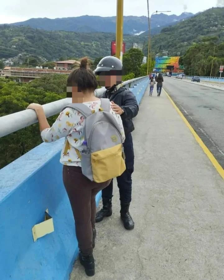 La ciudadana de 27 años de edad, fue auxiliada por funcionarios de la Policía Municipal de Libertador, quienes al notar que estaba llorando la abordaron y evitaron que se lanzara desde la referida estructura, ubicada entre las avenidas Urdaneta y Las Américas, a la altura del Mercado Principal.