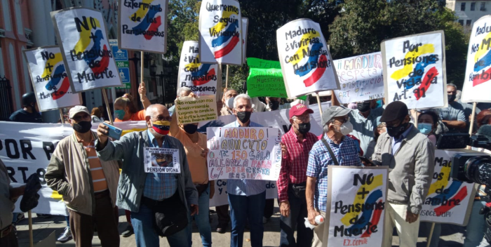 Los adultos mayores se concentraron en la avenida Urdaneta de Caracas, como medida de protesta para mostrar su descontento, aseguran que $30 no alcanzan para vivir. Aseguraron que reciben «pensiones de muerte».