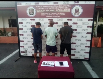En este caso el actuante fue el Destacamento N°113, junto a funcionarios de la Mancomunidad Policial de la Costa Oriental del Lago. Los detenidos quedaron plenamente identificados como: junior Emiro Rincón Urdaneta, Antonio González Gómez y Helge Hemmero Redondo.