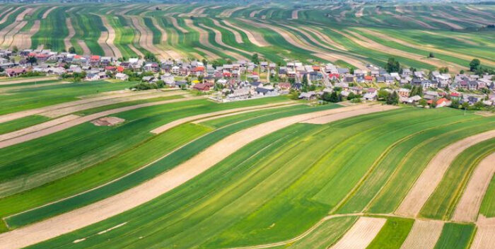 El pueblo de Suloszowa Tiene unos 6.000 habitantes y se extiende a lo largo de dos impresionantes campos de cultivo.