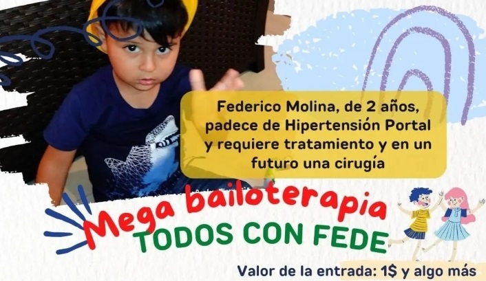 Federico Molina, “Fede”, de 2 años, padece de Hipertensión Portal, por lo cual sus familiares han desplegado una campaña por las redes sociales @federico_hulk donde solicitan con carácter de urgencia ayuda económica para cubrir el tratamiento y una cirugía que requerirá más adelante, por lo que han venido realizando diferentes actividades en pro de la causa.