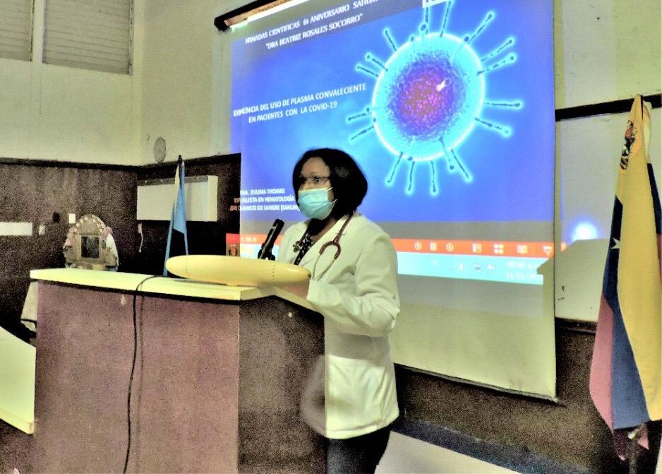 Observamos que en aquellos pacientes a los que se les administró Plasma Convaleciente -en las primeras etapas del curso de la enfermedad y que no estaban críticamente enfermos- redujeron la mortalidad y necesidad de ventilación mecánica’.Quien así lo informó es la Especialista en Hematología, Doctora Zulima Thomas, Jefa del Banco de Sangre del principal centro Centinela del occidente venezolano, en su ponencia “Experiencia Del Uso De Plasma Convaleciente En Pacientes Con Covid-19” llevada a cabo en las pasadas Jornadas Científicas, del Servicio Autónomo Hospital Universitario de Maracaibo (SAHUM), en la cual manifestó “el uso de Plasma Convaleciente se ha descrito desde hace 100 años como objetivo de neutralización viral de brotes de enfermedades tales como: rabia, hepatitis B, poliomielitis, influenza A y B e inclusive el Ébola, evidenciando que el plasma convaleciente podría ser beneficioso en casos de Covid-19” Destacó, que el beneficio en pacientes a los cuales se les administró Plasma Convaleciente -en las primeras etapas del curso de la enfermedad y que no estaban críticamente enfermos- redujo la mortalidad y la necesidad de utilizar ventilación.