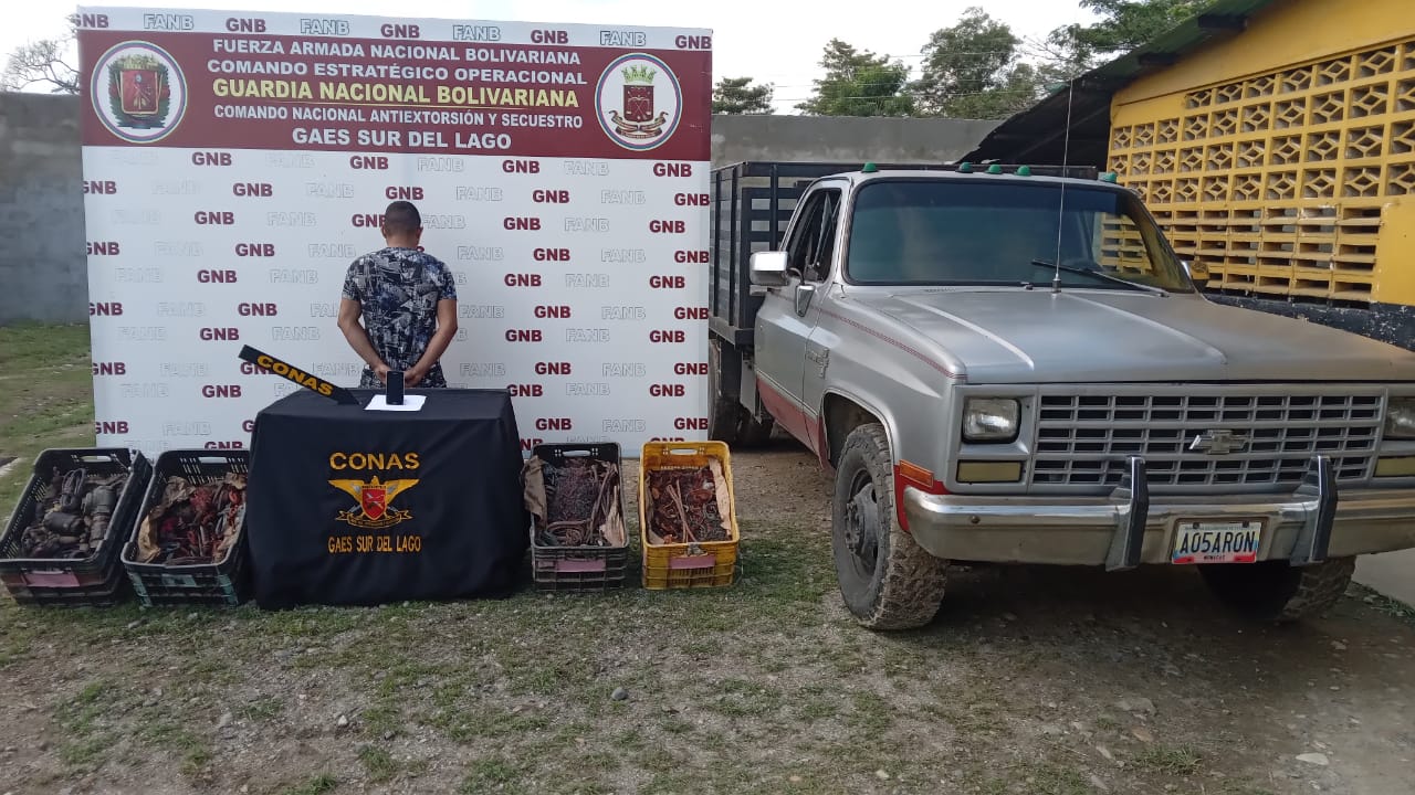 Un sujeto de 35 años de edad a bordo de un camión que se desplazaba por el sector 13 de Abril, parroquia Rómulo Gallegos del municipio Sucre del estado Zulia, fue capturado por una comisión del GNB-CONAS-GAES Sur del Lago, por transportar oculto en cesta de verduras al menos 150 kilos de presunto material estratégico.
