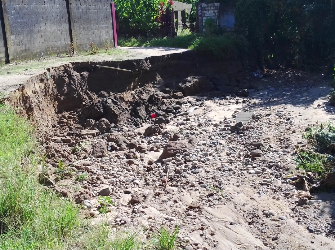 Habitantes indicaron que la crecida del caño del sector Changaleto ocasionó gran daño a su arteria vial, señalaron sentir temor de quedarse sin carretera, además que una posible inundación que afecte sus viviendas.