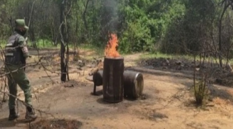 La información fue emitida por este cuerpo castrense, a través de un informe de operaciones, en el que detallaron que durante el procedimiento, fueron incinerados 440 litros de gasoil.